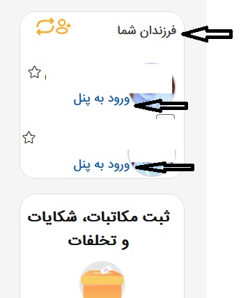 سپس از سمت چپ اسم دانش آموز را انتخاب می کنیدو گزینه ورود به به پنل را می زنید: