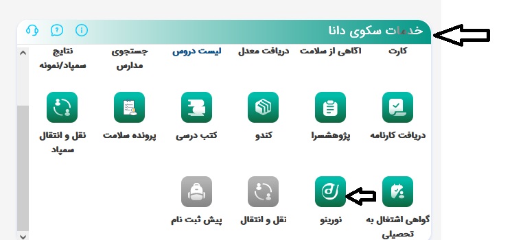 در ادامه بر روی گزینه نورینو در قسمت خدمات سکوی دانا انتخاب می کنید: