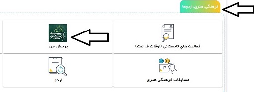 حالا گزینه پرسش مهر را قسمت فرهنگی ،هنری و اردو انتخاب می کنید: